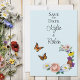 A whimsical botanical illustration featuring blooming wildflowers, soft pastel garden roses, delicate daisies, golden coneflowers, woodland mushrooms, lush greenery, and fluttering monarch butterflies. This enchanting nature-inspired artwork creates a romantic, fairytale atmosphere perfect for a wedding. Ideal for couples who love boho florals, woodland themes, cottagecore aesthetics, or charming outdoor celebrations.