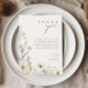 This Whimsical Wildflower | Ivory reception thank you card is perfect for your simple, elegant boho wedding. The modern rustic greenery accompanied by the minimalist watercolor wildflowers will help bring your vision to life! This design of pretty gold flowers, touches of bohemian sage green and purple is sure to complete your minimal fall floral wedding dream! Keep it as is, or choose to personalize it with your photos! You can also look to other items in this collection to truly bring your whole wedding together!