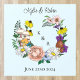 A whimsical botanical illustration featuring blooming wildflowers, soft pastel garden roses, delicate daisies, golden coneflowers, woodland mushrooms, lush greenery, and fluttering monarch butterflies. This enchanting nature-inspired artwork creates a romantic, fairytale atmosphere perfect for a wedding. Ideal for couples who love boho florals, woodland themes, cottagecore aesthetics, or charming outdoor celebrations.