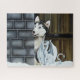 Whimsical Winter Fantasy Husky Dog Dragon Castle Jigsaw Puzzle