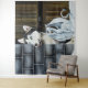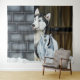 Whimsical Winter Fantasy Husky Dog Dragon Castle Tapestry