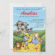 Follow the yellow brick road to a magical birthday celebration! This enchanting invitation features beloved characters from The Wizard of Oz, including Dorothy, the Scarecrow, the Tin Man, the Cowardly Lion, and Toto, all gathered on the iconic yellow brick road leading to a charming farmhouse. Perfect for a whimsical 5th birthday party or any Wizard of Oz-themed event, this design sets a playful and adventurous tone for your guests. Make your child's birthday unforgettable with this delightful invitation that captures the spirit of Oz. It's a wonderful way to invite friends and family to a celebration filled with wonder and magic. Remember to add your party details to make it your own and get ready for an adventure down the yellow brick road to fun! This invitation is sure to bring a smile to everyone's face. The bright colors and charming artwork will transport your guests right into the heart of Oz. Get ready for a truly magical celebration with this adorable Wizard of Oz birthday invitation.