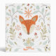 Woodland fox with green leaves. Artist: June Erica Vess. Image ID: 105549D.