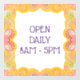 For announcing sales, times open, use other door with an arrow, YOU can easily customize this cute square cling!