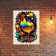 Fun bright artwork that really captures the mood I’m going for! Pop art with cyberpunk energy. A little sweet but also spicy. This art is the perfect size and vibe for our art gallery wall. The printing looks great, high quality with vibrant colors! I went with the semi-gloss finish, which adds a little extra shine and thickness to the print making it excellent for high-traffic areas like the staircase wall.