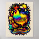 This rooster is depicted in a playful, cartoon-like style, with brightly colored feathers. The overall effect of the artwork is whimsical and playful, with a sense of fun and humor. The bright colors and lively composition make it an ideal choice.