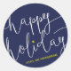 A whimsically modern scripted design wishing happy holidays in a bright yellow and navy color palette. Personalize this design with your name to make it your own. The red background color is easily changed in the "Customize it" settings too!