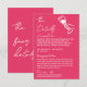 Simple and stylish retro whimsical wedding guest info details. With deep pink raspberry background and white hand written text layout with whimsical wordings and vintage hand drawn hand holding a wine glass on the front and candle on the back. All the info are customizable as website, transportation, accommodation . Grab it along with other products from this classy hand made retro wedding suite.