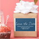 Whimsy Save the Date Stickers in blue and white with a simple and fun script typography design. These trendy save the date stickers are easy to customize with your wedding details. For more customization options, click on the Customize It button.