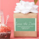 Whimsy Save the Date Stickers in green and white with a simple and fun script typography design. These trendy save the date stickers are easy to customize with your wedding details. For more customization options, click on the Customize It button.