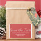 Whimsy Save the Date Stickers in red and white with a simple and fun script typography design. These trendy save the date stickers are easy to customize with your wedding details. For more customization options, click on the Customize It button.