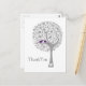 a gray whimsy love tree with two purple love birds on tree branch, mod and trendy wedding Thank you cards. Matching products also available.