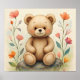 This horizontal poster features a whimsical watercolor of a sweet friendly teddy bear with cute flowers.