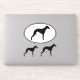 Oval and die cut sticker set. These durable dog silhouette decals are waterproof and fade proof. Stick these Whippet silhouette vinyl stickers to your laptop, phone, notebook, water bottle, helmet, skateboard, or even your car. Visit Jenn’s Doodle World for even more dog breed vinyl stickers and Whippet lover’s gifts.