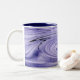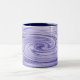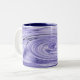 This mug features a swirling abstract design in shades of blue and purple which moves from left to right. The pattern resembles a whirlpool.