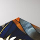 A portrait of a beautiful cat's head is presented in an abstract stained glass style. Shades of blue, yellow, and turquoise weave together in this artistic composition, capturing the feline charm in a mesmerizing and elegant display.