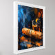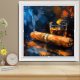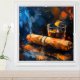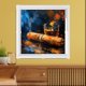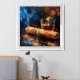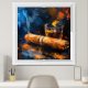 Embark on a visual odyssey with this captivating digital artwork set against a dark coal blue backdrop. Vibrant touches of orange and glimpses of gold illuminate the scene, creating striking high contrasts that draw the eye. The focal point of the piece is a meticulously crafted cigar, depicted with dynamic brush strokes that add depth and texture to the composition. This digital creation invites viewers to explore the intricate details and immerse themselves in the rich visual narrative of cigar indulgence.