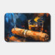 Embark on a visual odyssey with this captivating digital artwork set against a dark coal blue backdrop. Vibrant touches of orange and glimpses of gold illuminate the scene, creating striking high contrasts that draw the eye. The focal point of the piece is a meticulously crafted cigar, depicted with dynamic brush strokes that add depth and texture to the composition. This digital creation invites viewers to explore the intricate details and immerse themselves in the rich visual narrative of cigar indulgence.