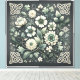 Soft florals intertwine with graceful Celtic knot motifs in a balanced folk composition filled with clover shapes, curling vines, and layered blossoms. Muted sage greens, warm ivory, and deep charcoal create a calm, heritage-inspired palette that feels both old-world and gently modern. The flowing symmetry and botanical details evoke cottagecore charm, Celtic folklore, and a quiet, storybook mood rooted in tradition and nature. AI generated artwork.