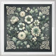 Soft florals intertwine with graceful Celtic knot motifs in a balanced folk composition filled with clover shapes, curling vines, and layered blossoms. Muted sage greens, warm ivory, and deep charcoal create a calm, heritage-inspired palette that feels both old-world and gently modern. The flowing symmetry and botanical details evoke cottagecore charm, Celtic folklore, and a quiet, storybook mood rooted in tradition and nature. AI generated artwork.