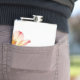 This small flask is really cute. Good for taking water or other liquids with you. My only complaint is the top is somewhat difficult to get back on after you screw it off. The printing is really good on the flask. My design came out just right!
