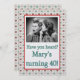 5" x 7" pearl shimmer invitation with a vintage 1940s black and white image of two women sharing the latest gossip in a white rectangle with a red border on a background of red cherries and blue flowers on white. Customizable text. The back has a white rectangle for your party details on a background of red cherries and blue flowers on white. See matching large gift bag and square sticker. See the entire Patriotic 40s Invitation collection in the INVITES | Invitations & Cards section.