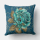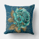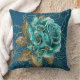 Dive into opulent dreams with this pillow adorned in teal blue and gold roses, set against a mesmerizing filigree background—a true masterpiece for your living space.