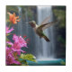 "Whispers of Nature: Hummingbird, Waterfall Ceramic Tile