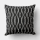 White Abstract Wavy Geometric Pattern on Black Throw Pillow