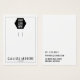 This keychain display card features a simple black and white design. It depicts a pinstripe black border, a place to add your logo, and matching modern typography. On the back, it includes contact information that can be changed completely or personalized to your details. It's a professional, elegant, and stylish way to display your product with pride. (keychain lines are printed markers only, cutting must be completed by the customer)