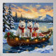 White American Eskimo Dog Christmas Boat Holiday Poster