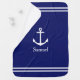 Cozy and eye-catching, this navy baby blanket showcases a bright white anchor and trim, with personalization for a special touch. Perfect for nautical nurseries, christening gifts, or keeping your little sailor warm on breezy beach days.