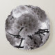 White and Black Cherry Blossoms Round Pillow