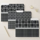 Modern Design Style Repeating Central Pattern With Coordinate Plaid Pattern And Ribbon. Two file folders with large repeating central pattern and coordinate pattern. One file folder with small repeating central pattern and coordinate pattern. Half Circle Checkered Motif With Windowpane Check Plaid Pattern Design. White and Black Colorway. © Mydeas/Mydeas Designs. All rights reserved.