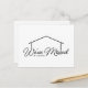 We've Moved postcard featuring an outline silhouette of a house and the words "We've Moved" in black against a white background on the front.