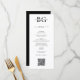 A minimalist black and white monogram initials wedding design. A simple design that uses the bride's and groom's initials and names to create an elegant classic monogram. A charming black and white minimalist monogrammed design with classy script typography. An elegant black and white monogram initials themed wedding menu card design with modern elements and QR Code. Matching wedding invitations and other stationery items are also available.