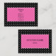 Black and white polka dot pattern. White polka dots on black and in the middle there is a hot pink rectangle to add your information.