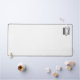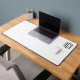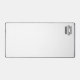 A white and black simple three letter monogram design in the top right-hand corner on a desk mat.