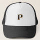Elevate your casual look with this white and black trucker hat featuring a bold "P" letter monogram. With its breathable mesh back and adjustable fit, this stylish cap combines comfort and functionality, making it a perfect accessory for daily wear or outdoor activities.