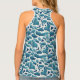 White and Blue Abstract Leaves | Coastal Pattern Tank Top