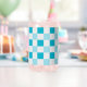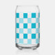White And Blue Checkerboard Pattern Can Glass