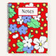 White and blue flowers on red spiral notebook