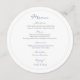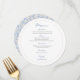 Chic, fresh and playful. This circular menu card template features a set of trendy and modern fonts, against a crisp white background. It includes 4 meal and drink sections. The back of the card wears a playful floral blue jacket. Cheeky and fun. Personalize to make it your own.