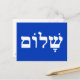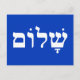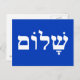 Simple text design saying Shalom in Hebrew in white font on a dark sky blue.