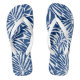 White And Blue Tropical Leaf Repeating Pattern Flip Flops
