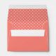 White and coral pink polka dot design. Small white polka dots on a coral pink background.