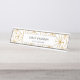 White and gold art deco geometric pattern desk name plate
