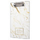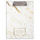 Coordinates with the White and Gold Marble Designer Business Card Template by 1201AM. Your name or business name is elegantly displayed over a white and faux gold background for a very chic aesthetic on this personalized clipboard. Art and design © 1201AM Design Studio