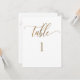 Help your guests find their table with this elegant modern white and gold table number. Double-sided cards. Clear space all around gives you the liberty to use a table holder or frame. Attractive "table" in modern handwritten calligraphy in faux gold foil print. Background color in white, which can be changed to another color by editing the design to match seating chart cards and menus available. Use the template text box provided to add and change the table number. Please place an individual order for each of your table numbers (i.e. for an event with three tables, you would need to place an order with table number one, add to the shopping cart, then come back add number two for table two, add into shopping cart, come back and add number 3 for table number three, add into shopping cart, and now that order is complete proceed to payment). Coordinating table seating plan cards with guest names, as well as slim guest name place cards, are also available. Part of our "Elegant Calligraphy Minimalist Wedding Stationery" collection. Visit the entire collection at: https://www.zazzle.com/collections/elegant_calligraphy_minimalist_wedding_stationery-119497981924462546