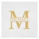 featuring personalized gold monogram in classic serif font style with box of name in the middle of monogram on white background.